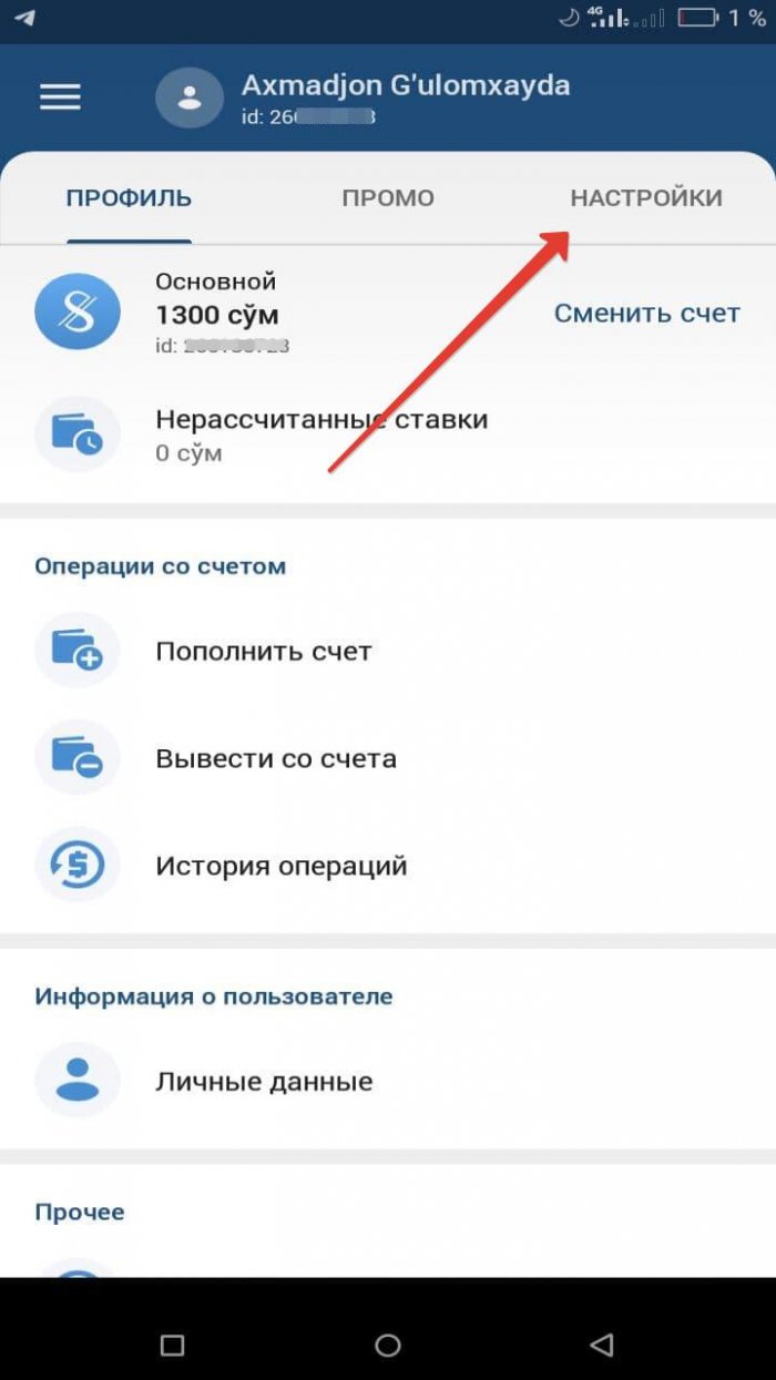 1xbet.apk mobil ilovasini Android telefonga o'rnatish orqali.